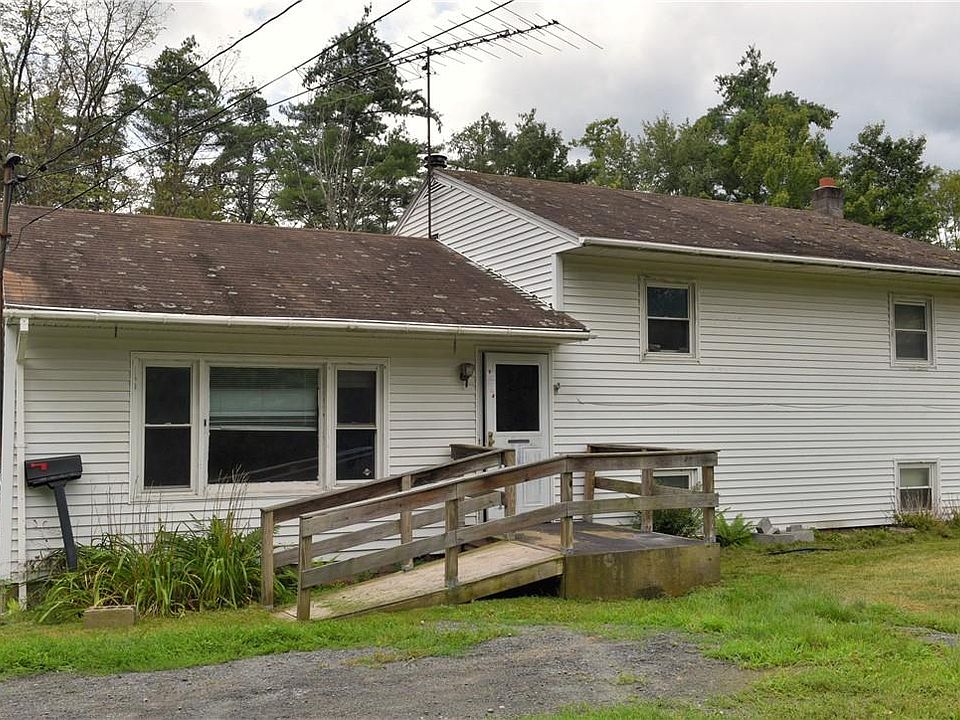 Just a few miles outside the Village of Ellenville, is this split level home with lots of possibilities. The home is located on a partially wooded 1.63 acre lot. It has three bedrooms, a full and half bath, rear deck, and an attached one car garage under. Outside there is a large storage building that would be great for a workshop and additional garage space. The house is in overall sound condition, but will need a variety of repairs and updates, enough so that some financing options may be limited. Additional Information: HeatingFuel:Oil Above Ground,ParkingFeatures:1 Car Attached,2 Car Detached,