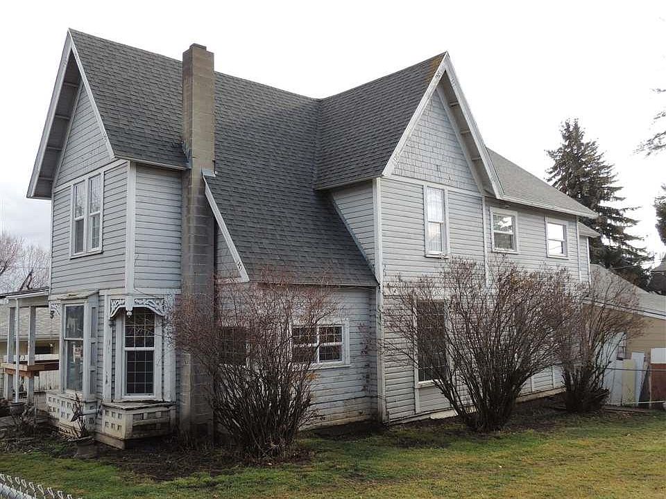 Classic Victorian style home on over-sized corner lot. Loaded with storage, shop, craft and play space! Formal parlor and dining space as well as kitchen eating, bedroom, utility, full bath and family room all on main floor! 2 pellet stoves and kitchen eating space is set up for another stove! Upstairs includes updated rooms: 3 bedrooms and master suite with walk-in closet. 4th bedroom and upstairs family bath ready for you to personalize. Bonus room above the garage and basement has two small storage rooms. The original boiler system is still in basement and most radiators are in place. Single car garage and the carport have have been enclosed for additional garage space with a man door and a auto door. Remodeled bedrooms upstairs were demoed to the studs with housewrap and insulation added along with updated wiring, sheet rock, paint and windows and flooring. New electrical panel downstairs as well as new sub panel upstairs. There is a large exhaust fan for cooling during the summer. So much potential!