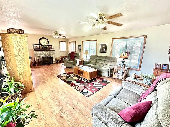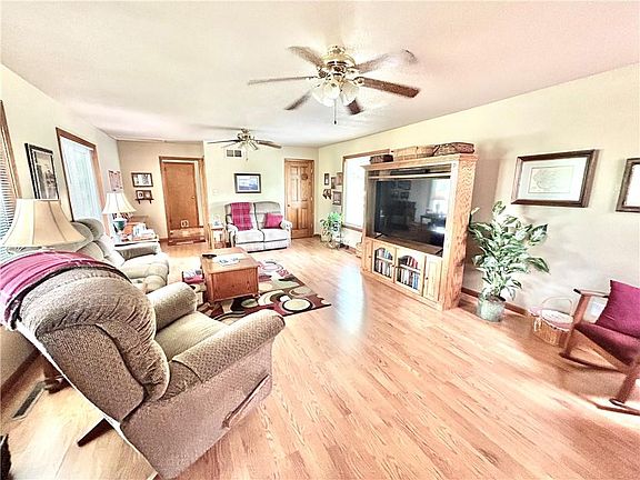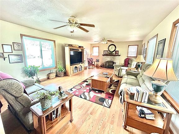 Beautifully maintained three bedroom, one bath raised ranch. You will enjoy the quiet country setting with hwy frontage. Three car garage, one being a large, 30x30 with tons of storage and whopshop space. Large family room on main floor with gas fireplace. Walkout basement has additional family room. You will love all the extras this home has to offer!!!