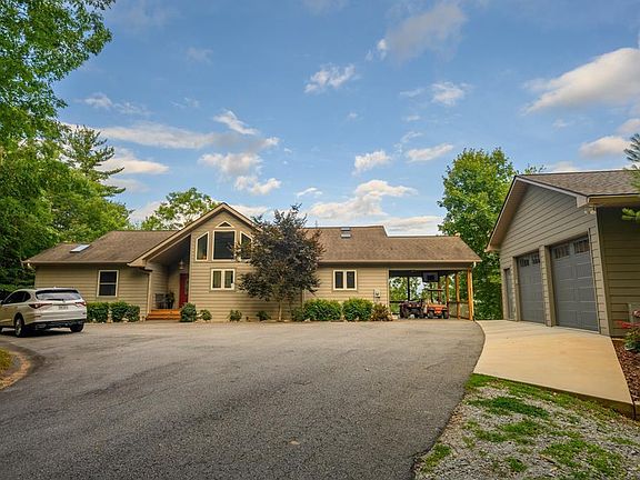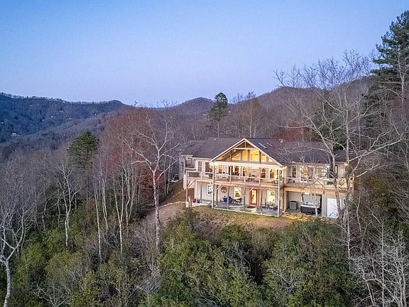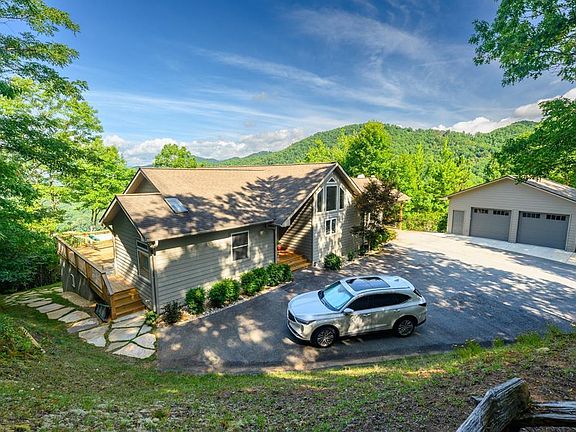 Why settle for a house on a lot when you can own a piece of the Smoky Mountains? This beautiful retreat overlooks a tranquil valley with a dramatic view of the Appalachian Trail ridgeline in the distance. Sitting on 36+ private acres adjacent to National Forest, this beautiful custom home includes a spacious great room, master bedroom suite, guest room, and utility room with access to an attached carport, while the lower walkout level includes a large recreation room, bedroom, 3 bonus rooms, and full bath. Enjoy breathtaking views from almost every room. The two-car detached garage sits above a 575 sq.ft. workshop! The cozy fire pit area creates a “campground” feel on a lower terrace. The woods are filled with wonder and wildlife. An old logging road makes for easy hiking or a fun ATV ride. A spring-fed stream flows through the middle of the property with another possible house site at the summit of the ridge. The access road is paved to the door of the house for a beautiful and easy drive home. The town of Franklin is only 10 minutes away (with a new hospital and grocery store). Please call for more information or to arrange your visit today!