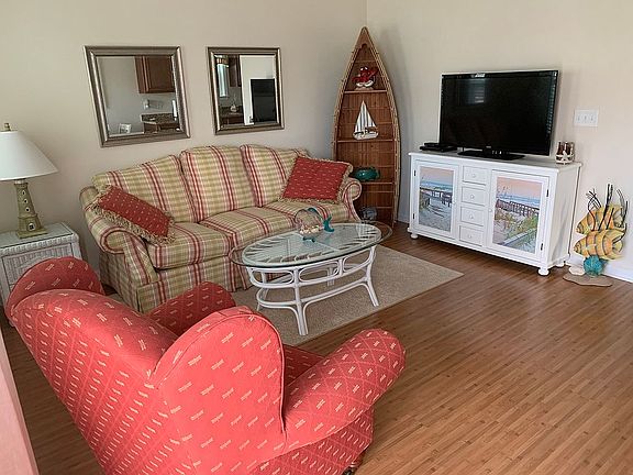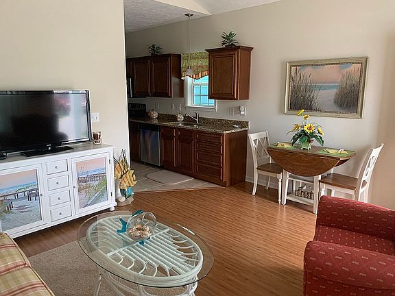 LIKE NEW, MOVE-IN READY, NEVER RENTED, SHORT GOLF CART RIDE TO THE BEACH! 3 Bedroom, 2 Bath. 1,115 TSF. Vaulted ceiling in living area and Master Bedroom. Granite countertops throughout, stainless steel appliances. Golf Cart Garage. Exterior storage area. HOA includes exterior building insurance, cable tv/internet, water, trash, lawn/pest care and a great community pool!