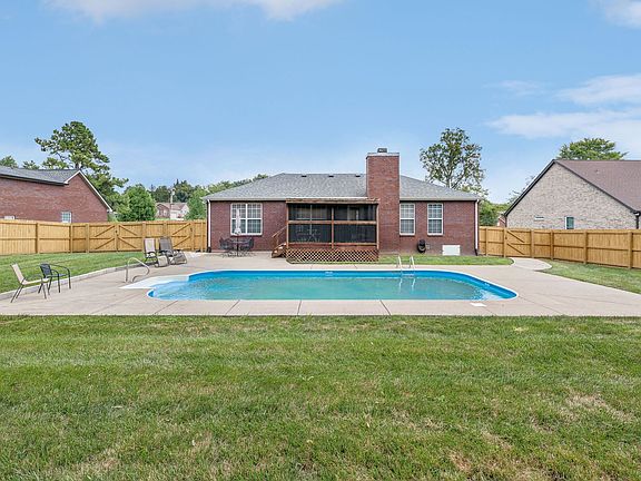 Pool, Pool, In Ground Pool that is 16 X 34 and 4 Foot Deep. New Fenced Backyard Backs up to Trees. Close to Providence and Restaurants. Screened in Covered Deck. Now for the necessity, Den with Fireplace, Eat in Kitchen,3 Bedrooms and 2 Full Bath,. Primary Bedroom has a Jacuzzi Tub and a separate shower. Stainless still appliances remain. 2 car attached garage with extra parking for more cars or Toys. Water Softener. New Roof 2014