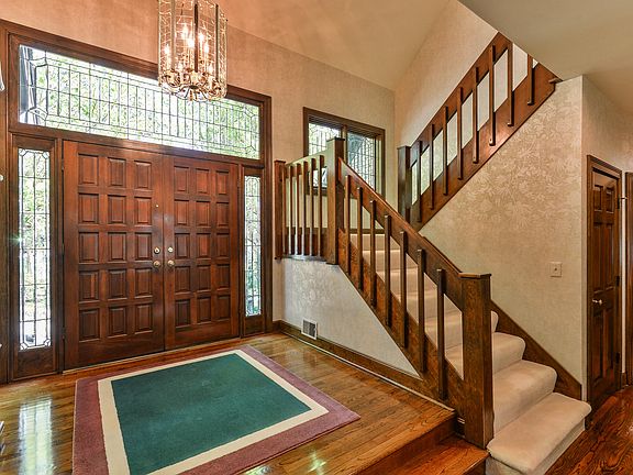 This wooded 1 acre retreat in Lake Forest offers over 5,400 square feet of finished living space. The main floor includes a large vaulted family room with wood ceiling detail, gleaming hardwood floors, fireplace with real stone surround and wet bar. Enter the lovely screened in porch or massive deck overlooking the private wooded lot from the great room or kitchen.The formal dining room has beautiful hardwood flooring and floor to ceiling windows. The eat-in kitchen also has hardwood flooring and vaulted wood ceiling with plenty of cabinet and counter space. The adjacent laundry/mud room and access to attached 3 car garage is conveniently located off of the kitchen. The first floor master suite also has gleaming hardwood flooring, a gas fireplace and massive master bathroom with vaulted ceiling. Completing the first floor is a handsome wood-paneled office and powder room. Upstairs you are greeted with a lounge area loft, 3 spacious bedrooms and 2 full baths. The lower level walkout basement has a large family room with wet bar, gas fireplace with stone surround, workout room and full bath. There is so much space to enjoy in this lovely home that has been meticulously maintained by it's current owners.