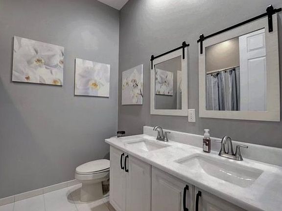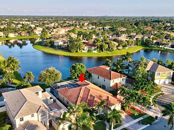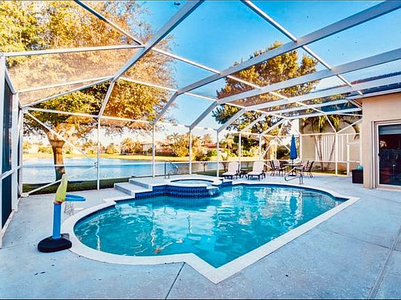 All of the most desirable features and upgrades such as: Lakefront lot, cul-de-sac, fully screened pool & spa, pool heater, 24/7 guarded gate & security, accordion shutters, all CBS construction, covered patio area, tiled throughout & laid on the diagonal, beautiful kitchen with granite counters and full granite backsplash and large breakfast bar, hi-hat lighting, tray ceilings in master bedroom, dining room and foyer, top-of-the-line appliances, custom built-ins in all closets-even the pantry, whirlpool tub, crown molding, custom paint and quite a bit more. The community has a beautiful clubhouse, a pool that belongs in a high end resort and lots of play areas.
