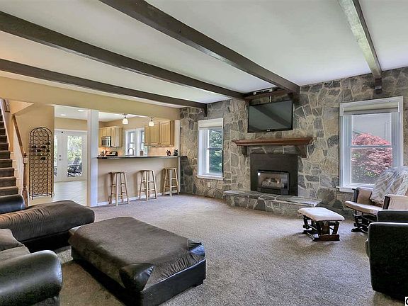 King of the Hill! Extensively updated brick Cape Cod w/2,000 + sq. ft. of plush living on manicured 1.18 acre w/mature trees & privacy. First floor bedroom w/full bath, spacious living room w/masonry fireplace w/gas insert, open kitchen w/updated appliances & ceramic tile floor. Natural gas heat, central air, thermal replacement windows, architectural roof, new plumbing & electric, detached two car garage w/loft for extra storage. Covered front and rear porches, high efficiency furnace, central air & more!