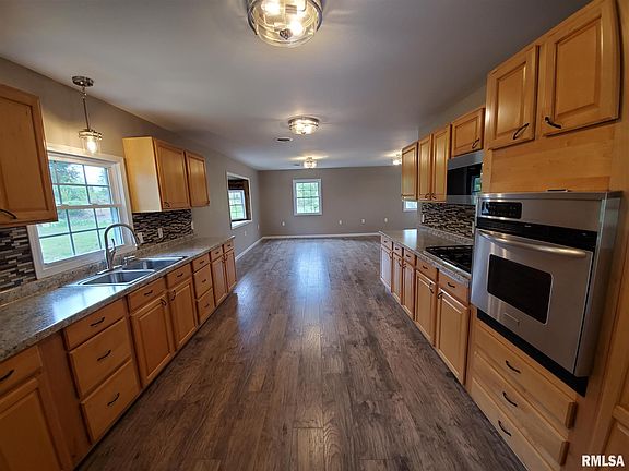 Be prepared to fall in love with this stunning country home! This three bedroom home has been completely remodeled and includes a pole barn and one acre. The kitchen boasts plenty of cabinets and new appliances. The living area is open to the kitchen and dining for easy entertaining. The master suite includes a large walk in closet, french doors, master bathroom with walk in shower, vanity with double sinks and a linen closet. There are two additional bedrooms with spacious closets and another full bathroom with walk in shower. The home also includes a family room and a laundry room with utility sink. A covered back porch, patio, pole barn, and large yard make this property ideal for outdoor activities.