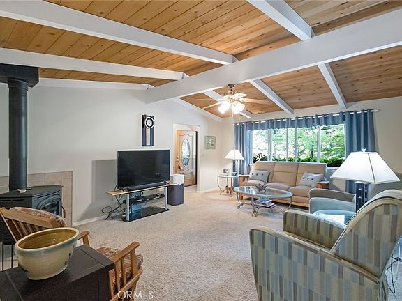 Great open plan home with vaulted and beamed ceiling in living room, large picture window offering views of the fully landscaped yards. Newer roof and vinyl double paned windows aid in the efficiency of this home along with wood stove for winter comfort. Large decking with retractable awning, fruit trees and easy care landscape as well as a workshop in the backyard of this fully fenced property. Large paved driveway as well as rear yard access and RV parking area. Come take a look at this affordable beautiful home!