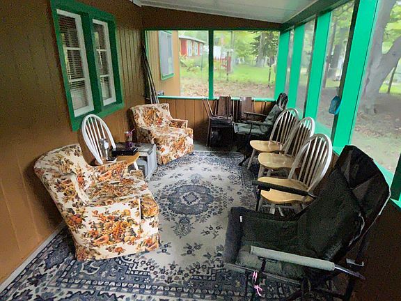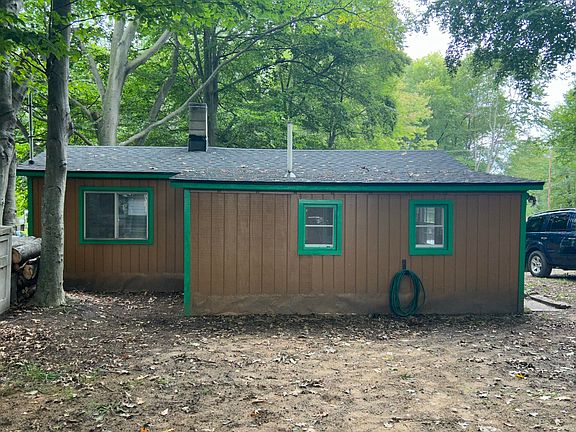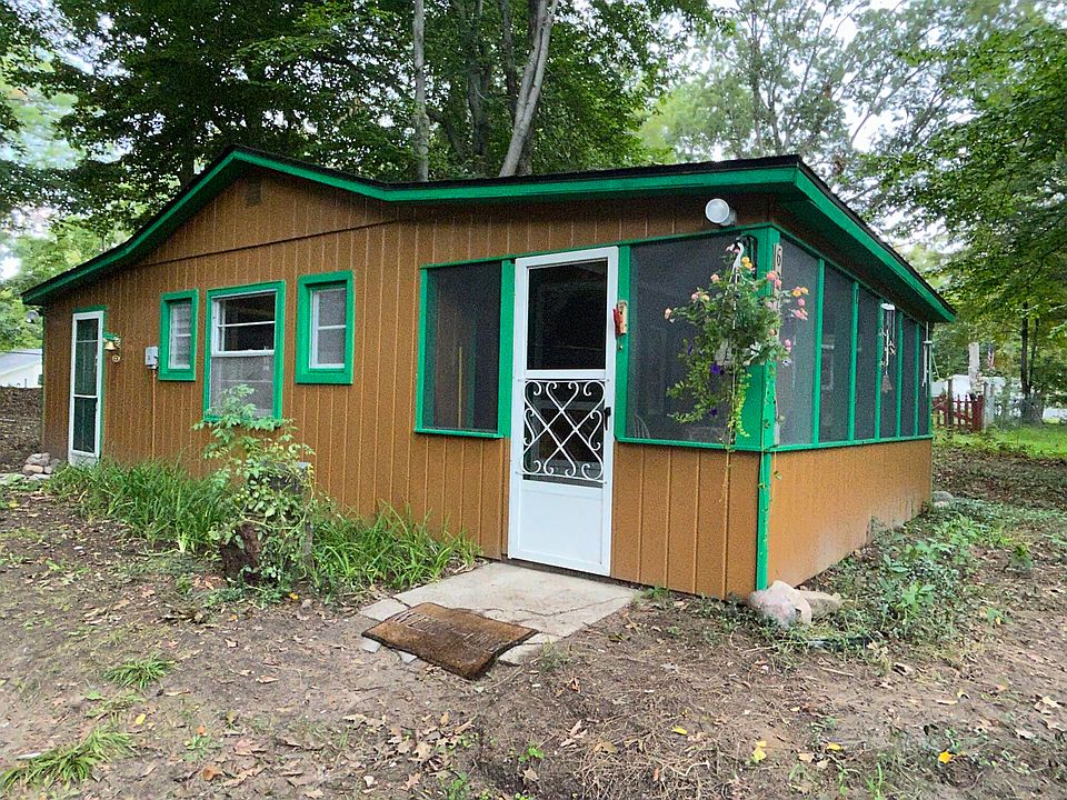 Opportunity is knocking! Furnished and Updated Cabin ready for you to enjoy year round or rent! 1 bedroom but sleeps maybe 6, 1 full bath, screened in porch, living room and dining area, kitchen with appliances. Gated Lake access to Bear Lake with sandy beach, playground, boat launch and fishing for associaton members! Many updates include, new roof 2023, updated light fixtures and electrical, new hot water tank on demand, new 5'' well, new well pressure tank, new floor in kitchen and bathroom, new carpet in living room, new ceilings, new insulation, new paint inside and out, windows all reglazed,new hardware windows and doors, all new screens with hooks, newer electric stove, tress cut down. Large lot as well.All Furnishings included except fishing poles and painting.Includes Paddle boat