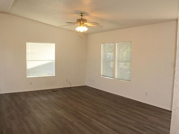 Very clean and comfortable home with views of Glassford Hill and the Bradshaws. Move in ready! Freshly painted interior walls, ceilings and kitchen cabinets. New vinyl planked flooring throughout. Carpeting in bedrooms. New aluminum mini blinds. Upgraded can lighting. Room for RV parking. Good size shed with electrical power. Masonry block wall in back yard. Great for first time buyer or investors.