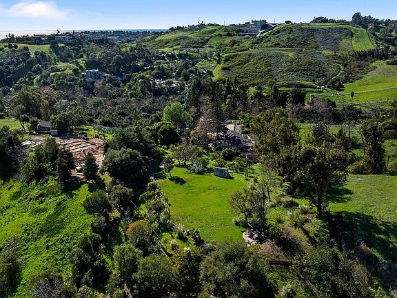 APPROVED AND PERMITTED COMPLETE WITH AN EXISTING GUEST HOUSE. Set behind gated access on a private street, this exceptional 5-acre parcel offers a rare blend of natural beauty, privacy, and coveted coastal proximity. The property features stunning, mature landscaping with towering trees, serene water elements including a tranquil pond and recirculating creek, and a large, grass-covered field that opens to an ocean view. Designed to feel like a secluded retreat, the setting provides remarkable peace and privacy while remaining just minutes from the beaches and amenities of Paradise Cove. A truly special opportunity to enjoy expansive land, lush surroundings, and close-in Malibu living. The subject property is an in-kind replacement + 10% replacing the single-family residence and guest house that existed prior to Woolsey. An approved Planning Verification Woolsey Fire (PVWF) replaces two structures, including a new 5,256 sq ft single-family residence, associated grading and retaining walls, and photovoltaic panels. The single-family residence is 24-ft in height. Additionally, a proposed 1,138 sq ft cottage is proposed and an existing auxiliary building and appurtenant structures equal 3,537 sq ft for a total development of 9,931 sq ft for the subject property. The existing bridge is to remain but reinforced and improved to meet the Fire Department access standards. The PVWF expires on November 8th, 2026. All building permits have been obtained. The OWTS (septic system) Plan Check expires on June 8th, 2026. All other permits (i.e. grading, access road, retaining walls, SFR, cottage, etc.) expires on May 18th, 2026. EXISTING GUEST HOUSE/AUXILIARY STRUCTURE OF APPROX. 1500 SQ.FT. CONSISTS OF 2 BEDROOMS, 1 1/2 BATHS WITH A DEN, LIVING ROOM AND CONVERTED GARAGE. PERFECT AS AN ONSITE RESIDENCE FOR A CARETAKER, GROUNDSKEEPER OR THE OWNER DURING CONSTRUCTION.
