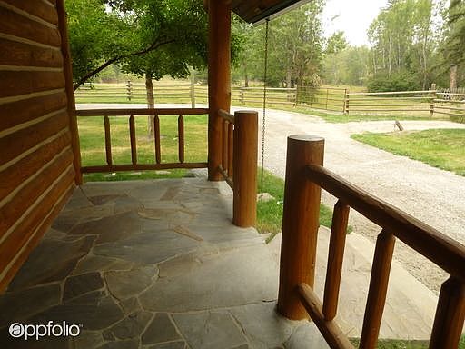 Adorable 2 bedroom, 1 bath, 1186 sq. foot log home with 2 outbuildings and a hay barn with large stall, tack room and fenced pasture for your horses with an additional fee. Lower ceilings in several rooms of the house; gas stove in the kitchen; laundry room with washer/dryer hook up; master bedroom with large closets and bathroom with a shower. Carpeted throughout with lots of natural light from the many windows. One shed for gardening or outdoor adventures and a fenced area for approved animals. Pet friendly! (RLNE1864877)