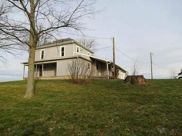Nestled on top of a hill and surrounded by 3 acres is this two story farm house, a multi-level barn and also a pole barn. Three Bedrooms are located upstairs. Kitchen- DR Combo with laminate floors. Rustic Type interior with some knotty pine walls, some original wood floors upstairs and wood trim in LR.