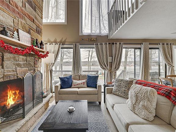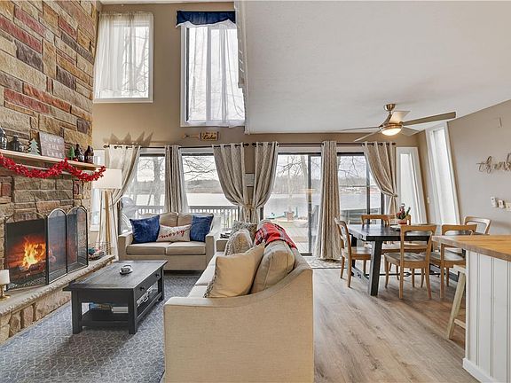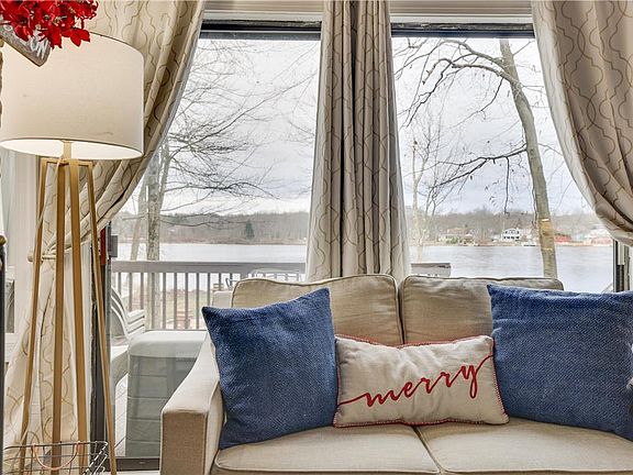 Schedule Your Tour Today for this Beautiful, TurnKey Active Short-Term-Rental Lakefront Home on Stunning Lake Carobeth! This charming contemporary home is nestled in a gated community featuring pools, amenities and security just moments from Kalahari Indoor Water Park & Convention Center, Camelback Mountain Resort and all conveniences in downtown Mount Pocono! Enter into open-concept vaulted space with floor to ceiling rustic stone fireplace. Take advantage of the best of summer lakefront living with beach area, hot tub and huge deck facing the water. One bedroom and bath on each level with second floor featuring additional sleeping space/open loft w great lakefront views. Property is sold fully-furnished w all items just three years young. Super lows taxes under $2K/Yr. Come See Today!