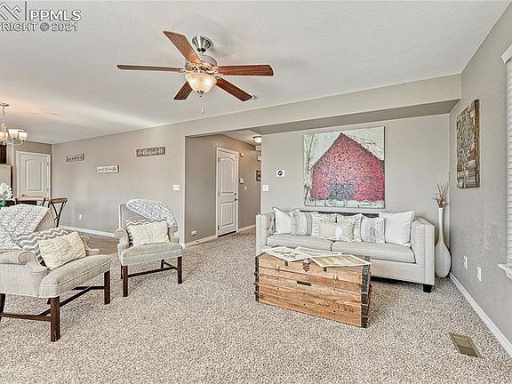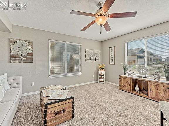 ***WELCOME HOME***Located in the coveted Mountain Valley Preserve community, this 4 bed, 3 bath, 2, 450 square foot 2-story home features extensive upgrading throughout both the interior and exterior! Sure to impress and built in 2017, this like new home boasts: a covered front porch, a fully finished/painted garage, custom garage shelving, A/C, a fully fenced backyard, landscaped front and back yards, a composite back deck, Nest thermostat, Ring doorbell, ADT security system, whole-home humidifier, hardwood flooring, ceiling fans, granite countertops, kitchen backsplash, staggered kitchen cabinets, stainless steel appliances, undermount kitchen sink, recessed kitchen lighting, granite kitchen island, kitchen pantry, two-panel doors, brushed nickel hardware throughout, tiled bathroom flooring, tiled shower surrounds with custom inlays, tiled laundry room flooring, custom laundry shelving, sump pump, insulated unfinished basement, and the list goes on and on! Walking into the front door, you are instantly greeted with a well-appointed powder bathroom, hardwood flooring, and an open-concept floorplan leading directly into the living/dining/kitchen. Come enjoy the expansive, upgraded kitchen, the eat-in dining room (with a walkout to the back deck and access to the fenced backyard), the light and bright family room, and access to the finished two car garage. Make your way upstairs to the private master suite (featuring room for a sitting area or desk, an upgraded en suite, and a walk-in closet). Finishing out the upstairs you will appreciate three more bedrooms, a full bathroom, and a large laundry room. Make your way to the 700 square foot unfinished basement just awaiting your personal design. Located within minutes to some of Colorado Springs' most well-known shops, restaurants, parks, trails, entertainment, military installations, schools, and the like, schedule your showing now as this home will not last and is not to be missed!