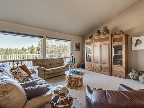 Privacy and serenity abounds this meticulously maintained property. This is a light and bright 4 bedroom 2.5 bathroom home with open floor plan placed on over 13 acres! Spacious kitchen with stainless appliances, including built-in fridge, granite slab counters and dining bar. Spacious living room with vaulted ceilings, cozy wood stove and slider that leads out to partially covered TREX composite deck with spectacular view and Jacuzzi hot tub. The master boasts double walk in closets, large bathroom with sunken tub, shower stall and double sinks. Downstairs you have 3 additional spacious bedrooms, laundry and full bathroom. Garage is complete with epoxy floors and tons of cabinets. Don't miss this gorgeous Custom home with an amazing view behind the gates of Rancho Del Sol.