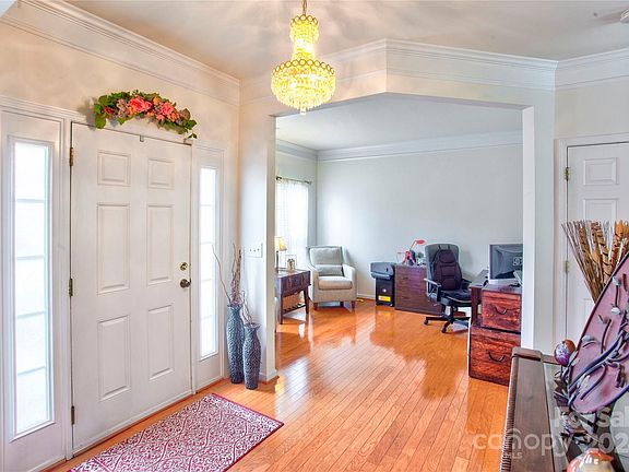 Welcome home to this spacious, beautifully maintained 2-story in convenient Coventry! Open style great room with a fireplace with gas logs, a spacious kitchen with breakfast bar and a breakfast area. Also on the main floor you will find a formal dining room and an additional flex room for office or den. The primary bedroom is spacious with a walk-in closet and new spa-like bath with beautiful tile floors, step-in shower and dual vanities. Three more spacious bedrooms share a large bath. There are many upgraded light fixtures and ceiling fans throughout. The bonus room has new engineered hardwood floors and could potentially be a 5th bedroom. Mature landscaping, fenced yard, a private patio and 10 x 16 storage building complete the welcoming exterior space. Current school zoning is Harrisburg Elementary and Hickory Ridge Middle and High Schools. Competitively priced at $435,000.