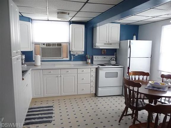 Call Sue Roach to view 269-625-3503. Cute Updated Cottage on all sports Long Lake. Quiet setting, shade trees and large lakeside deck. Newer Seawall along waterfront and permanent cedar dock. Long Lake is a great boating and fishing lake. Cottage has a nice open floor plan, updated kitchen and good sized living room with fireplace. Two bedrooms and to maximize sleeping, the current owners are using a nook area that has the laundry hook up as additional sleeping with bunk beds. Could be used for extra sleeping or for your washer & dryer. Appliances and most furnishing included making this a turn key property at an exceptional value on an all sport lake. There is also a refrigerator in the one car garage that is included. This is a great property for all your waterfront enjoyment. Long Lake is 222 acres. Like to fish, Long Lake has bluegill, bass, crappies, walleye, perch and northern pike, per seller. Nice level lot (no stairs) and good parking.