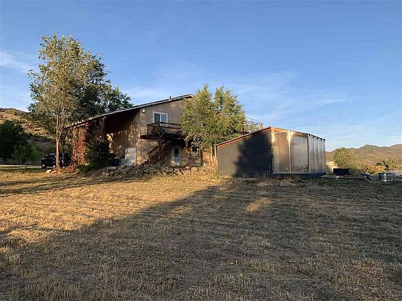 Location, location, location. 9 acres in Peach Valley with 10 shares of irrigation water from the Rosemond ditch. 2 greenhouses. One of the greenhouses has an indoor area and lofted storage area. Shed and chicken coop. Large shop outbuilding with gravel. Become a self sufficient hobby farmer. Plenty of flat acreage. The home boats a large deck with great views. Lower level has a laundry area, bedroom, office and 3/4 bath. Upstairs you'll find a kitchen, two spacious bedrooms, and a three quarter bath. Large main living area. Light pours in. Home is sold in as is condition. Don't let this tranquil and fertile property get away.