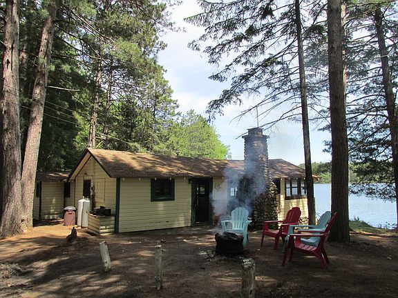 NORTH NOKOMIS LAKE RARE FIND!! This unique nostalgic piece of property consists of 3 cabins. The main cabin features a field stone fireplace and 2 bedrooms and 1 bath that sits right at waters edge. Enjoy the phenomenal views of the lake through the wall of windows that this cabin offers as you are having your dinner. The back cabin has 2 bedrooms and 1 bathroom & the small cabin sleeps 2. Each of the larger cabins has its own pier. Included is a large garage with 2 showers in the back that you enter through separate doors and allows plenty of storage room for all of your toys. All this consists of 3.33 acres and 204.92 feet of level sand frontage. Also as an added bonus this property connects to state land. With a little bit of TLC keep it as is or build your Northwood's dream. Opportunity awaits at this unique property. Call & make it your today!!