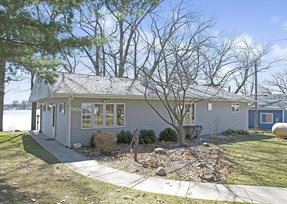 Enjoy private sandy beach frontage on all-sports Keeler Lake! This 2 bedroom, 1.5 bathroom low-maintenance waterfront home is waiting for lake memories to be made! Positioned on the North side of the lake, you'll never miss a sunset or sunrise. This home includes 2 additional lots across the street - 1 vacant, 1 with a 2 car garage. There's plenty of room to entertain, play, and relax whether it be on the lakeside deck, spacious grassy lawn, or in the sandy water! Interior of home features open-concept layout, main floor living, and views of Keeler Lake from almost every room. Don't wait long, schedule a showing today!