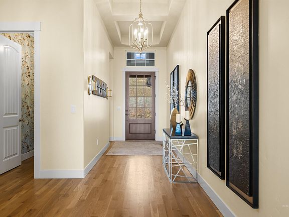 Warm & comfy E Boise home offers the active yet serene lifestyle you seek. Timeless hardwoods, new carpet, H.D. shades, plantation shutters & many other upgrades. Great room has a magnificent gas fireplace, stately wet-bar, wine fridge & built-in cabinets for storage. It seamlessly connects to the expansive covered patio w/custom sliding glass doors for an indoor-outdoor lifestyle. Media room w/built-in surround sound kicks movie night up a notch! The well equipped kitchen has a large leather granite island, granite counters, Bosch appliances, matte porcelain tile backsplash & the spacious open pantry could also be flex space. Master retreat & luxurious ensuite w/dual vanities, deep soaker tub, porcelain tile walk-in shower & extended walk-in closet. Enjoy the beautiful Barber Valley views, community pool and trailheads. 3-car garage w/epoxy flooring, workstation & cabinets. Luxury, comfort, variety & views describe this well appointed home which is a stone’s throw away from the vibrancy of the city!
