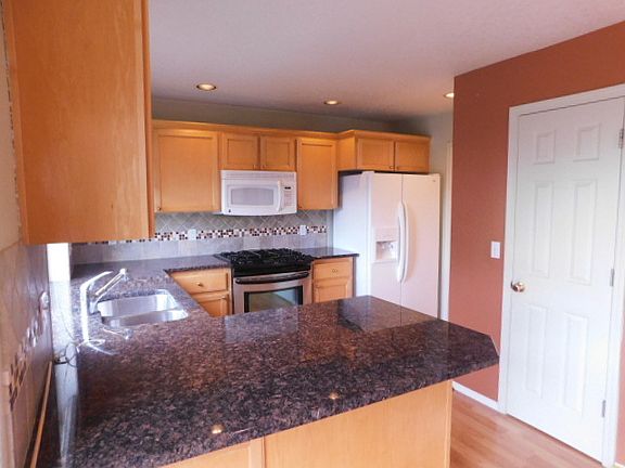 Great layout with no carpet, only hardwoods! Formal living room with fireplace that flows into formal dining area and kitchen. Great sight-lines from kitchen to eat-in area over-looking additional living space and backyard. Main floor also features fourth bedroom and full bath for ease of access. Upstairs you'll find a large bonus room and three more bedrooms, including the master, with a double-door entry, large window and huge walk-in closet. Master bath features recent marble tile, two sinks and large soaking tub surrounded by natural light. Includes washer/dryer. No smoking and no pets.