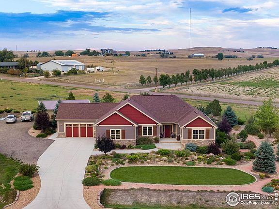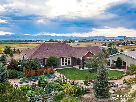This stunning comfort size ranch style home sits on a 3.617-acre lot and features incredible panoramic Rocky Mountain views. Ultra peaceful setting where you can enjoy daily sunsets. 4-car attached garage plus a 4-car detached garage/shop. Concrete edging, drip system, hot tub, many fruit trees and a 24X24 garden with h gelkultur raised beds. 2,276 finished square feet and features a front executive office, spacious dining area, 3 beds, 3 baths and thousands in upgrades. Laundry with utility sink, shake off room, open kitchen with stainless steel appliances, granite slab countertops and a gas range. Primary bedroom with retreat, fan, patio access, walk-in closet and a 3/4 luxury bath. Family room with corner gas fireplace. Highly efficient furnace, central air conditioning, whole house generator, tankless water heater and much more. Only 2 miles East of Fort Collins. Come see why Fort Collins is voted as one of the best places to retire in America. Call for a detailed list of home features, floor plan or to schedule a private showing.