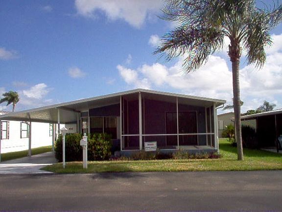 If you are looking to move quickly, this might be the RIGHT FIT for you! Ready to go and can close within 48 hours with community approval/application and your cash deal. This 2 bedroom, 2 bath home is sited in the active, 55+ gated community known as Palm Breezes Club, with a live-in, on site Manager, and is part of the renown Cal-Am Homes and Properties family.As you park under your extended carport- shed straight ahead has your washer/dryer- you can whisk the groceries away and walk up two steps to your kitchen. How easy is thatRefrigerator, new garbage disposal , dishwasher, and range are included.The kitchen cabinets have been redone- nice corner lazy susan, and a reception area cabinetry is handy for a computer station, or accessory display. Just past the dining area is the large living room.dining room with sliders out to the front screened porch. Your hall bathroom has a tub/shower combo commode and vanity. The spare bedroom is a good size. The MASTER bedroom is on the right hand side and has a lighted walk-in closet. Both bedrooms have carpeting. The master bathroom has a linen closet , commode and shower stall. ALLL serious offers will be considered and presented witjh park approved application ($30- pp) . Please call/text to (561) 398-0568 for your personalized showing. We hope to see you soon!