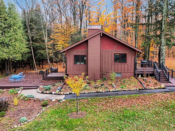 Beautifully updated 4-bedroom 2-bath home on an incredible riverfront property in the heart of northern Michigan. This house sits on 1.8 acres with 430 feet of frontage on the Cedar River, noted Blue Ribbon Trout Stream. Property includes a 2.5 car garage, variety of mature trees, and 4 low maintenance perennial gardens. Two new Trex decks including front deck with handicap ramp and 1700 square foot deck overlooking the river. Main level has an open floor plan. Living room overlooks the river and has vaulted ceilings, cork floors and a new gas fireplace. Updated kitchen with granite ''River Rock'' countertops, newer cupboards and appliances. The main level also includes 3 cozy bedrooms and an updated bathroom with a tiled steam shower. The lower level has a large bedroom, large family room with new pellet stove, large workshop with office, and full bathroom. Other updates in recent years include new windows, doors, flooring, furnace, well, septic, appliances, and full house generator as backup to an updated electrical system. This house is on a paved road central to all northern Michigan recreation, including Shanty Creek Ski and Golf Resort which is 3 miles away. Starlink high speed internet is now available at this address. AT&T cell phone service works well. Includes all newer appliances, king bed in lower level, fridge in lower level, barstools, campfire setup for Trex deck, and black deck furniture. Sellers are licensed Michigan Realtors.