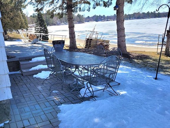 Enjoy beautiful sunsets on this lakefront year-round cottage located on picturesque 1300 acre Lake VanEtten, an all sports lake with 49 feet of sandy bottom frontage. Charming three bedroom, one and a half bath with a ton of character. The home was updated in 2018 with fresh paint and new flooring. Cottage has forced air heat 2018, central air, metal roof, laminate wood floors, and carpeted bedrooms. Most furniture is included. Both bathrooms are clean and updated. The exterior is maintenance free aluminum siding, a brick, paver patio with cement stairs leading down to a beautiful flagstone fire pit by the water to enjoy gorgeous sunsets. Oversized 2 garage to hold all your toys. Includes a 40’ dock. City water installed 2021. Come check out this beauty.