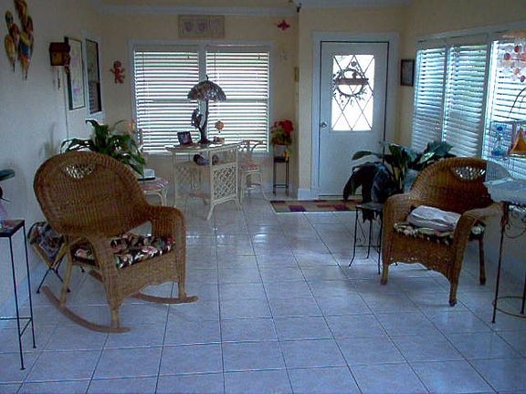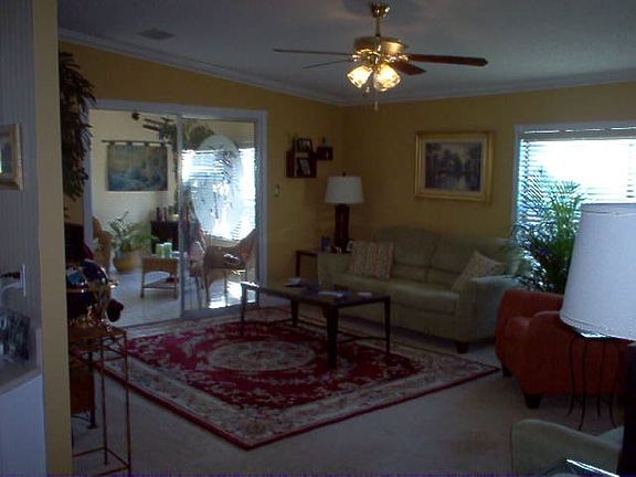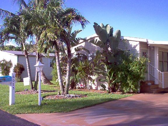 This manufactured HOME had a COMPLETE make over in 2005- from the roof down to the floors- and every room shows this pride of ownership and upgrading! From the knock-down walls, to the crown molding to the fluted accents and corner motifs, you WILL see the difference when you come insideThe FRONT 26' real ceramic tiled floor ,multi-purpose room has central air, slatted wide slated blinds, and sparkles - has loads of east facing windows. PLEASE NOTE: This is a "land-lease" situation, wherein you purchase the home cash (meaning cashier or certified funds- there is no financing available) and then pay a monthly maintenance fee of $612- per month for a variety of services/amenities. Through the etched glass door slider you will enter the more formal living room. The dining room has a laminate wood floor and is open to the seat height counter bar and bevy of kitchen cabinetry with SBS refrigerator, dishwasher, and smooth top range/oven. (Please see photos). To the right, down the hall is your laundry center,(washer & dryer stay) neat and tidy with a built in desk area next to a window. BONUS- cabinetry and a fold down ironing board behind the fluted mid wall door. Through this room is a door leading out to your raised tiled floor side SCREENED room. To the left, is a door which has access to your spare bathroom. Tiled floors, newer fixtures and crown molding. The spare bedroom is a very good size and has a lighted walk-in closet, as does your MASTER bedroom. The master bathroom is quite unique- fresh -glass ceramic tiles, new medicine cabinets(his/hers) over the sinks with three doors, a linen closet and then a door which leads into the LARGE shower stall and commode area. There is a nicely stained driveway with storage shed under the carport. This is a manicure home inside and out...and one you shouldn't miss to seePlease call/text to (561) 398-0568 for your call-ahead showing of this SPECIAL home. Thank you for looking and we hope to see you soon.