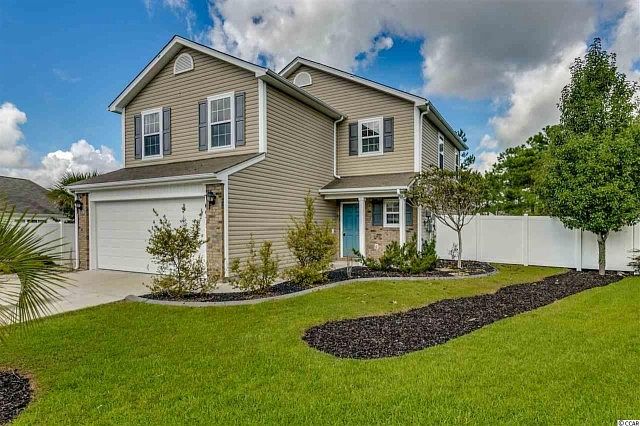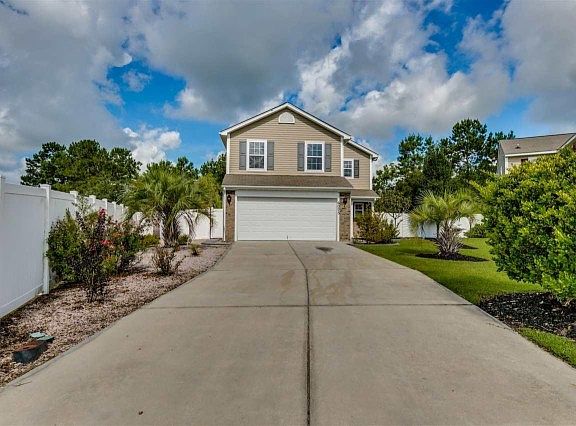 Spacious 4BR/2.5BA home in the Avalon community in Carolina Forest. Located on a large lot in a private cul-de-sac near the back of the community, it features a new outdoor patio, low maintenance fenced yard, new irrigation system, 2 car garage and it backs up to preservation / conservation land for even more privacy This home has been freshly painted throughout, including the finished garage! All new hardwood maple floors throughout the main level living room, dining room and Carolina room. Large open eat-in kitchen boasts new stainless steel appliances, tile backsplash and a breakfast bar. Other features include high end lighting, new screens, hardwood floors in master, upstairs laundry room, painted accent walls, ceiling fans in all rooms and a 2 car garage with an extra long driveway for additional off street parking.