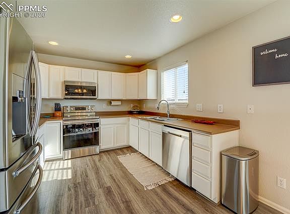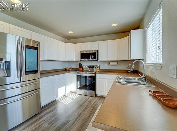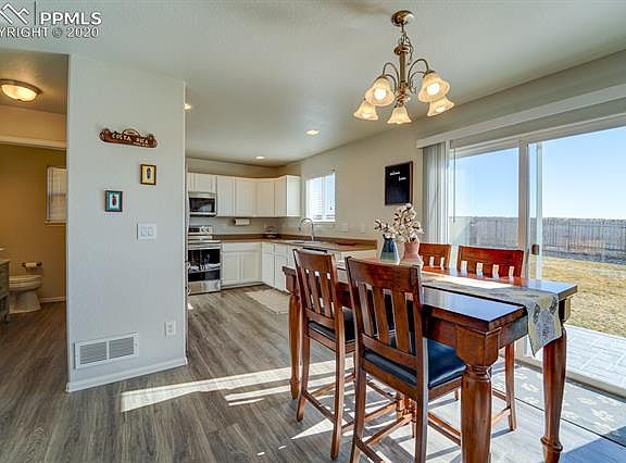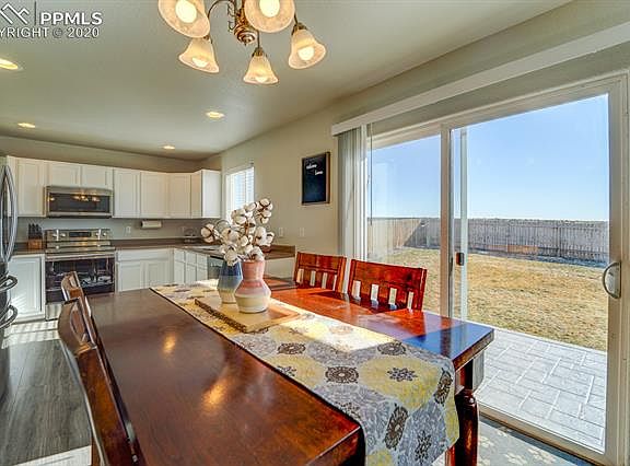 WELCOME HOME to beautiful 2 story home in Painted Sky at Waterview! Main level is bright and open floor concept with newer engineered hardwood flooring (8/2018), the kitchen features all stainless steel appliances and opens to dining area and living room (wired for surround sound) with walk out to large stamped concrete patio (5/2019) overlooking backyard that backs to open space and has beautiful Colorado Mountain Views for entertaining family and friends! Upstairs is the master bedroom with adjoined bath, there are 2 additional bedrooms with jack and jill bath and laundry area. This home is conveniently located to Fort Carson and Peterson AFB. Don't miss this gem it will not last long, call for your private showing today!