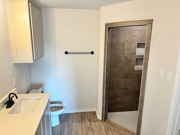 Carpet in bedroomsStainless steel appliancesQuartz countertopsKitchen has islandCustom cabinetsTwo sinksWalk in shower