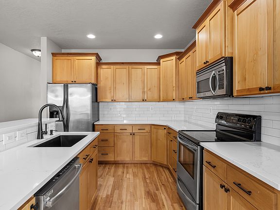 Nestled in the quiet and charming Hazelwood neighborhood, this 4-bedroom, 2.5-bathroom house offers a spacious and comfortable living experience. Enjoy the summer in the backyard with the mature trees, covered patio, and a large garden box that is complete with dripline irrigation. Or spend your time in the 2.5 car garage featuring a perfect hobby space. Inside, you'll find an open-concept living area with a cozy fireplace, a modern updated kitchen, ample storage space, real hardwood floors, and shiplap accents throughout. The spacious master bedroom features an ensuite bathroom with a soaker tub and a large walk-in closet. Located within walking distance to the grocery store, pharmacy, and library, with easy access to local restaurants, shopping, and amenities such as the YMCA, airport, and more. Renter pay for utilities. Renters must upkeep the lawn and landscaping which requires watering lawn on schedule allowed by HOA, mowing/edging at least once a week, and weed prevention in lawn and flowerbeds. No smoking on property; failure to follow this will result in fees. Renter must upkeep hardwood floors by mopping with non-drenching method.
