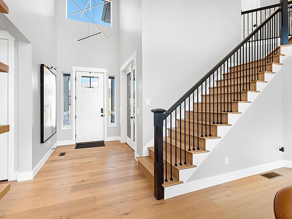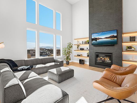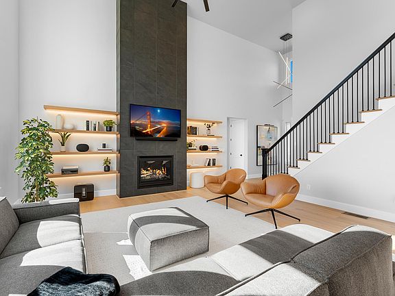 This one-year-old home has been intentionally designed and customized with a tasteful modern style in mind. With well over $175K+ in upgrades, creating a true sanctuary of lifestyle and comfort. Enjoy breathtaking mountain, valley, and lake views from the two-story great room, primary suite, and deck. The walkout basement features 10-ft ceilings and a state-of-the-art professionally installed home theater with 7.1 Surround Dolby Atmos sound system , a 92" x 116" screen, and a 4K projector. Take advantage of the expansive space for entertaining, gaming and relaxation. The chef's kitchen boasts CAFE black matte appliances, a 36" induction cooktop, under-cabinet lighting, and a stunning island fixture. Additional highlights include automatic and programmable blinds and exterior lights, smart home features, built-in office shelving along with privacy shades for office meetings, and two laundry areas. With custom-designed bathrooms, high-end flooring, and floor-to-ceiling tiled gas fireplace and floating shelves, this home is the perfect blend of luxury and modern elegance. Professional landscape plans included!