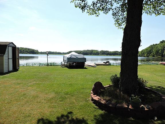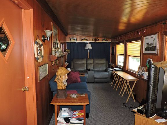 Nice and quiet small engine lake with great fishing and great relaxation. Well kept property that is an original 1968 mobile home with additions. Screen porch, 2 baths, 1.5 bathrooms. All-year use possible with electric baseboard heat. Wood burning fireplace, pontoon boat included with many other personal property items.