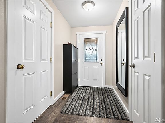 This beautifully finished rambler is furnished and ready to move in. 3 Bedroom 1 3/4 bath with family room. The backyard is finished to perfection with a covered patio and cement pad for your outdoor gatherings. Double attached garage includes the front load washer and dryer for your convenience. Master bedroom includes an EnSite with shower and beautiful tile and stone finishes and a walk in closet. Through the kitchen is a family room with a retractable wall for privacy from the large kitchen. Furnishings included in living room, kitchen and bedrooms. Willing to negotiate some furnishings if necessary. Does not include kitchen items such as dishes and the like. Tenants responsible for all utilities and landscaping. One pet possible under 40 lbs with approval, fee, and deposit. This is a non-smoking unit. All information provided is deemed reliable but is not guaranteed and should be independently verified. A $40 fee is required for each application. If approved, a $65 administrative fee is required. These fees are non-refundable. OMNI Property Management, 11 Bellwether Way Suite 105, Bellingham WA 98225