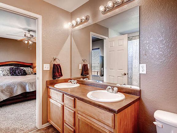 This wonderful home in quiet neighborhood with view of the Peak has been lovingly cared for! Large family room opens to the kitchen and dining and with no neighbors behind you! Upstairs laundry is conveniently close to bedrooms. Powdered bath is easy access. Open stairway leads to three good sized bedrooms upstairs! Master bedroom has private bath with dual sinks! Two more bedrooms share the large hall jack-n-jill bath! Unfinished basement gives you plenty of room to grow as needed! Come see this home!