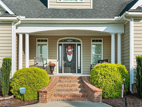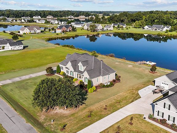 Custom built by Jamie Oakley, this lake front home does not disappoint! Quality construction is evidenced by the gleaming, real, hardwood floors throughout the living area, built in shelves, custom designed cabinets, and plentiful mill work!. Enjoy your morning coffee or afternoon beverage on the dock or covered, conditioned porch with EZ Breeze system. Most rooms have a unique ceiling design. The foyer offers hardwood floors and a tray ceiling. Outstanding view of the lake from the spacious den with vaulted ceiling. The den is open to the kitchen and breakfast room. Kitchen has well thought-out placement of custom cabinets with ample storage and counter space. Built in, pull-out spice racks by the stove top, pull out shelves in the pantry and more. High end appliances . Large breakfast room with a fabulous view of the lake in addition to seating at the kitchen island. 3 bedrooms down stairs including the spacious master bedroom with trey ceiling. Master bathroom has a 2 sink vanity as well as an additional vanity, jetted tub, walk in shower, and walk in closet. Even the laundry room and the bathrooms have granite counter tops. Upstairs bonus room has been utilized as a mother-in-law suite and has its own full bathroom and walk in closet. The walk in closet is enormous and has the potential for additional space if desired. Relax or entertain in the heated and cooled EZ Breeze porch which is large enough to accommodate a crowd. The home features a 2 car garage and a golf cart garage as well. This home is as functional as it is beautiful. It has been meticulously maintained and features vinyl siding and a tankless water heater. And did I mention the LAKES? Bring your paddle board, canoe, motor boat, or fishing poles and enjoy the water year around! Just minutes from major roads, Greenville, Kinston, Goldsboro, and New Bern.