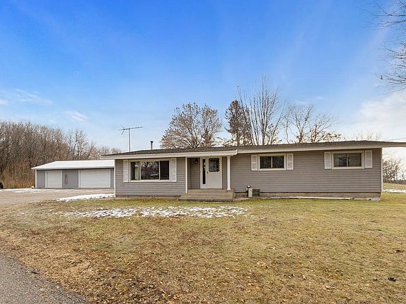Welcome to this 5 acre home with a highly sought after 60 x 25 pole shed. This is a Rambler 1 story style home with a full unfinished lower level with high ceilings ready to be finished putting the home at around 2,600 sq ft. The main level hosts 3 bedrooms and one bath. The 5 acres is very private with a heavily wooded portion to the back with walking trails, across the road there are hundreds of acres owned by the DNR that make this acreage feel even bigger. The pole shed has 2 16ft wide doors and the end has a drive through section including 2 9ft wide doors, that end section is also partitioned off inside with a wood stove work shop. There is a screen porch off the back that leads to a concrete patio perfect for entertaining. If you're looking for acreage that also abuts to hundreds of more acreage this is it! Open house 12/3/22 11:00 - 12:30.