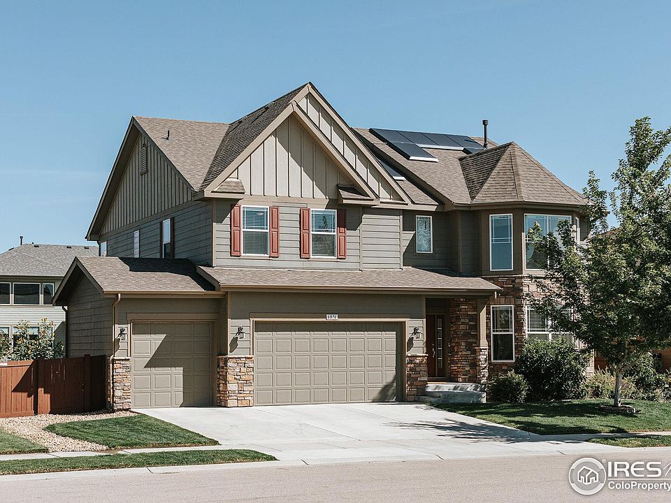 Ideally located in the Town of Timnath, this home is perfect for those hoping for that active Colorado lifestyle. Amenities include Community Center with pool and water slide, fitness and recreation center, and many neighborhood parks. Quick access to I-25 and Fort Collins. This spacious home has four bedrooms upstairs, a 5th bedroom with an ensuite on the main level and full unfinished basement. The main floor offers two living room spaces, great for families of all sizes. Double blinds in all windows and solar panels for energy savings. Nest Protect for peace of mind. 3 car garage, a spacious backyard with beautiful landscaping and a side patio with stone pavers for entertaining!
