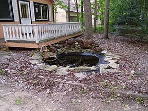 A cabin/chalet in the woods on large wooded lot. Secluded setting, but close to all the amenities of the association. Open deck on the front and detached two car garage. Electric heat with open living space combination kitchen/dining open to the living room with brick fireplace, natural wood. Cozy winter retreat and open summer space. Association offers beach and lake access. Lot is 60x337x73x355, just partially cleared from what you see. Water feature in front yard, just off the deck. Check this out and start building memories this year. Property is being sold subject to 24 CFR 206.125. The state sales contract must include the following verbiage in the body of the contract and not in an addendum. . 'Pursuant to Section 28 of the Real Estate Purchase Addendum, this document is subject to all terms and conditions set forth in the Real Estate Purchase Addendum.'