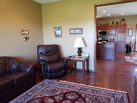 Scenic Country Living with Beautiful View of Lake! Well kept 3 1/2 year old home on 3 acres. One-story, 2-Bedroom, 2-Bath area ranch featuring large country kitchen with granite counters that opens to informal dining and office area, 2-stall finished and insulated garage. Large front windows off bedroom and living room facing lake. Water softener, all electric home with lagoon and private well. Washer/dryer, matching stainless steel Samsung side by side refrigerator, stove, microwave and dishwasher all stay. Lots of Kitchen storage, center island. Large shower in main bathroom. Jetted tub in Master Bath. Quaint front porch and concrete back patio.