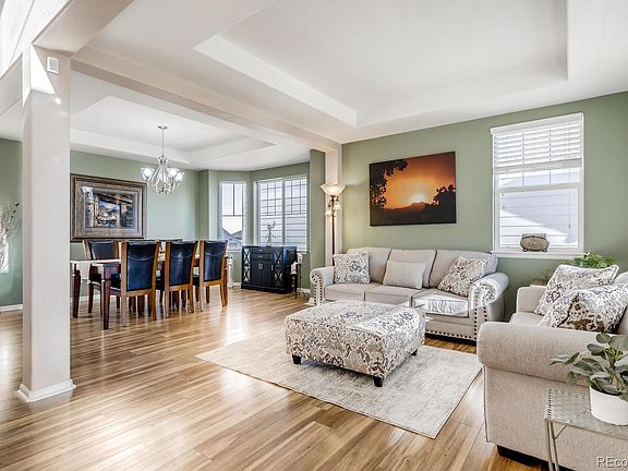 Beautiful Wheatlands 2 story features 5 beds (4 up / 1 bsmt), 4 baths (2 up / 1 main / 1 bsmt), main floor kitchen, living room, dining and family rooms as well as a finished basement w/additional family room and 2.5 car garage. Meticulously maintained pride of ownership shines throughout. The many windows allow the natural light to cascade in keeping this home bright and cheerful. The finished basement is perfect for guests or that teen wanting their own space. This home lives large. Enjoy relaxing on the deck or covered patio in the backyard or people watching from the covered front porch. The open floorplan is great for entertaining. Beautiful finishes and upgrades throughout including custom paint, tray ceilings, slab granite kitchen counters, stainless appliances and more. Perfect and move in ready. Close to dining, shopping, entertainment and other amenities. A short distance to both Southlands and Aurora Reservoir. The new YMCA facility membership (Scheduled to open in May) is included in the monthly HOA fee. Do not miss your opportunity to own this gorgeous home. Welcome Home!