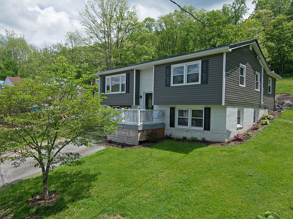 Enjoy views of the Greenbrier River from this sweet home in Ronceverte. Perched atop a hill on the far side, you’ll love the across-the-street proximity to the river without worry of rising water. This property is also conveniently located within minutes of Greenbrier Valley Medical Center, as well as the elementary, middle and high schools. The exterior is easy-to-maintain brick and vinyl. The front porch features Trex composite decking for year-after-year weather resistance. A sloped, paved driveway allows enough room to park multiple cars comfortably. Enter through a front door at ground level or through a second mid-level front entrance via the porch. At the ground level, an entertainment room with all new paint, recessed lighting, and high-quality vinyl flooring. This room includes a built-in speaker system and in-wall flat screen television mount. Next to the entertainment room, a laundry closet with cabinets and counter space offers room for a stackable washer/dryer unit. The hall between the entertainment room and kitchen feature barn board walls. The real treat of this is the large, artfully designed kitchen. Abundant oak cabinetry painted grey highlights the butcher block counter tops. A white subway tile backsplash makes for easy clean up. Double windows overlook the front yard from the eat-in dining space. Two more windows with stylish, deep sills offer a view of the side yard. A dark granite composite, double sink with pull down faucet and water filtration system are another nice detail of the kitchen. A half-bathroom adjacent to the kitchen includes barn wood-style walls. Upstairs 4 bedrooms have been newly carpeted. Large windows in the bedrooms make the good-sized rooms feel even more spacious. Ceiling fans throughout. The centrally located bathroom includes a shower/tub, sink with solid surface counter and ceramic tile floor. The master bedroom leads to a three-quarter master bathroom featuring double sink with solid surface countertop and shower stall. The windows throughout the home are new for added energy efficiency in winter. The HVAC system is brand new. A glass-pane door at the back of the home leads to a fenced-in backyard perfect for children and pets. The lower yard has been leveled and defined with a dry-stacked rock retaining wall. A second flat area at the top of the sloped yard has a modern wooden playset for safe backyard play. Schools: Ronceverte Elementary School Eastern Greenbrier Middle School Greenbrier East High School