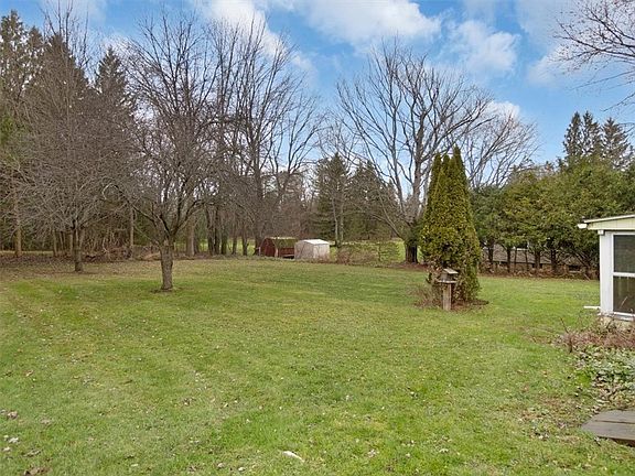 Loved and well-kept front to back split on a large, treed lot. Looks deceiving from the Road but ample living space. Vaulted ceilings in Living room and Kitchen. Living Room has large gas fireplace. Hardwood floors throughout the entry level living space and the 2nd floor bedrooms. Lower level has large family room area, 1/2 bath and bedroom or office space. Basement has extra space for storage, 2nd kitchen, etc. Large, enclosed porch off the lower level, walks out to rear yard. New Roof was complete tear off and was replaced within the last 10 years. Hot water heater 2020. Furnace had yearly maintenance. Central AC new in 2022. Kitchen garbage disposal is not working. Property includes an 8X10 Storage shed in the peaceful rear yard. A great opportunity to be in the Wayne Central School district. Close to shopping and Route 104 Access. Delayed showings 1/29/2025 &.Delayed Negotiations to 02/07