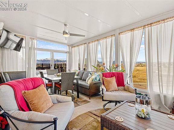 Welcome to your dream home in the heart of a sought-after Cumbre Vista! This meticulously maintained house, nestled in the award-winning school district 20, offers the perfect blend of comfort and convenience. Enjoy the prime location near the vibrant Powers Corridor, ensuring easy access to amenities and services and St. Francis Hospital. This charming residence boasts TWO spacious enclosed sunrooms. The upper level sunroom provides breathtaking views of Pikes Peak and the surrounding mountains. The outdoor kitchen and hot tub make this home an entertainer's paradise, ideal for hosting gatherings or enjoying a peaceful evening. The enclosed downstairs room offers a cozy retreat and a hot tub to enjoy year round! With recent upgrades including a new furnace and AC, and an instant hot water pump, this home is move-in ready. The finished basement features a wet bar, surround sound, and two bedrooms, making it a perfect space for recreation and relaxation. The main level offers two bedrooms, including a master bedroom with a 5-piece bath, soaking tub, walk-in closet, and electric fireplace. Beautiful hardwood floors and meticulous landscaping with enhanced edging add to the overall charm of this property. Take advantage of the proximity to the neighborhood 5-acre park, complete with a playground, picnic area, and baseball court. This is not just a home; it's a lifestyle in a great neighborhood with all the amenities you could desire. Don't miss the opportunity to make this your forever home!