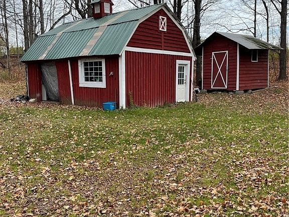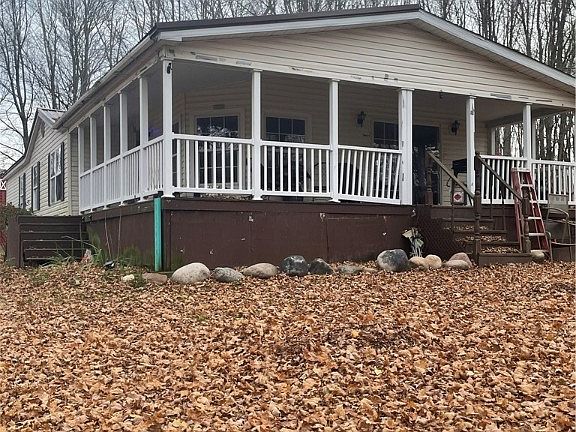 Affordable Country Living at its Best! A sprawling 1,960 sq. ft. 3 Bedroom 2 Bath 1999 Manufactured Ranch with a wraparound covered porch overlooking 4.9 acres of Nature's Wonderland, PLUS a Red Barn & Large Shed. New Tongue & Groove vaulted ceilings with recessed lighting, Fireplace accent wall, formal sized dining room, kitchen with island, create a welcoming atmosphere. Being sold in " As is " condition" repairs needed on interior & exterior trim, & doors. New back entrance stairs, new sliding doors will be installed at Sellers cost. Metal Roof installed 2 years ago!