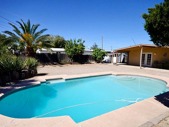 Rare 3 bedroom, 2 bath with a sparkling pool. New carpet, interior paint and evap cooler. Newer hot water heater. Freshly coated roof, dual pane windows with four solar tubes. This home features a covered patio with secluded backyard pool, two fig trees, grapefruit and lemon trees watered by 550 and 50 gallon rain harvesting system.